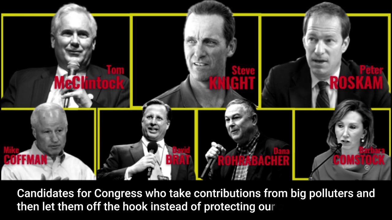 In the House of Representatives, the Sierra Club is targeting Barbara Comstock (VA-10), Dana Rohrabacher (CA-48), Tom McClintock (CA-04), Steve Knight (CA-25), David Brat (VA-07), Mike Coffman (CO-06) and Peter Roskam (IL-06).